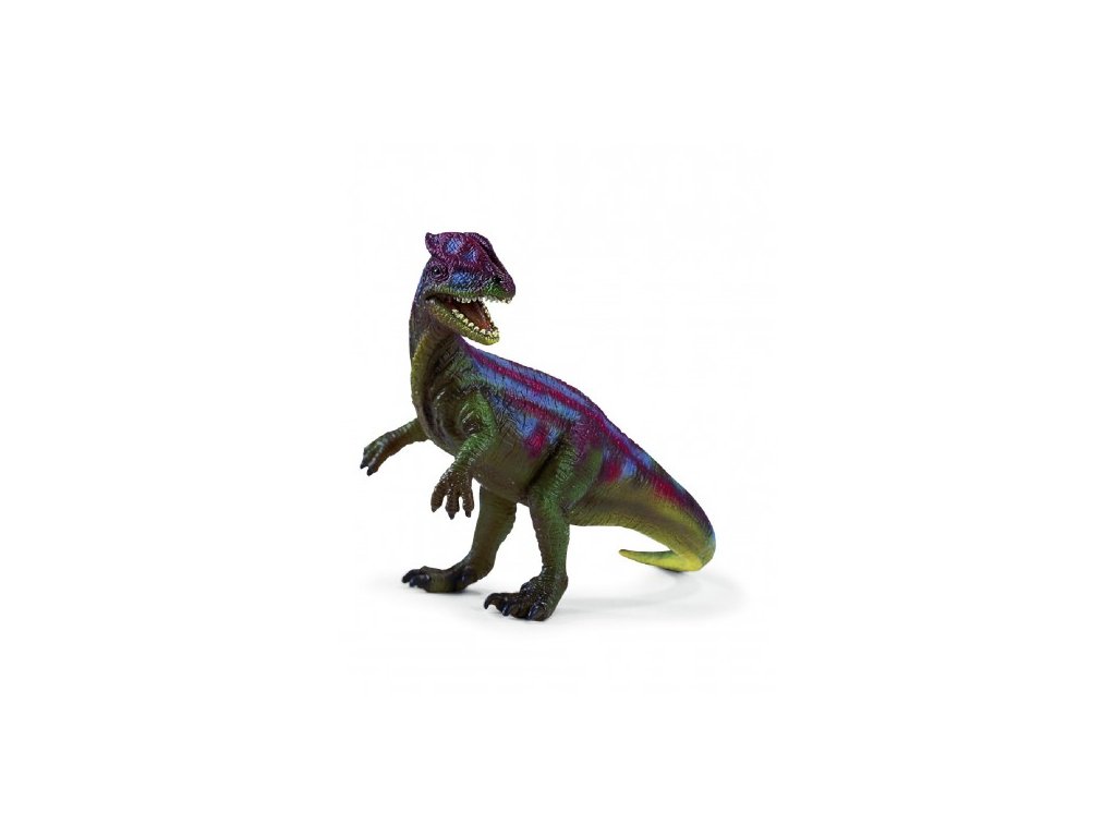 Dilophosaurus byl velký, po dvou nohách chodící dravec. Na hlavě měl dvojitý kostěný hřeben, podle něhož dostal název ještěr se dvěma hřebeny. Dokázal rychle běhat, jeho ocas byl stejně dlouhý jako tělo a při běhu sloužil k vyvažování. Krátké silné přední končetiny byly vyzbrojeny ostrými drápy. Model dilophosaura zn. Schleich je vysoký 10 cm, od hlavy k ocasu měří , 5 cm. Model byl vzorován v roce 2003. Hračka pro děti od 3 let.